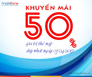 Mobifone khuyến mãi 50% ngày 3/4/2017 trên toàn quốc